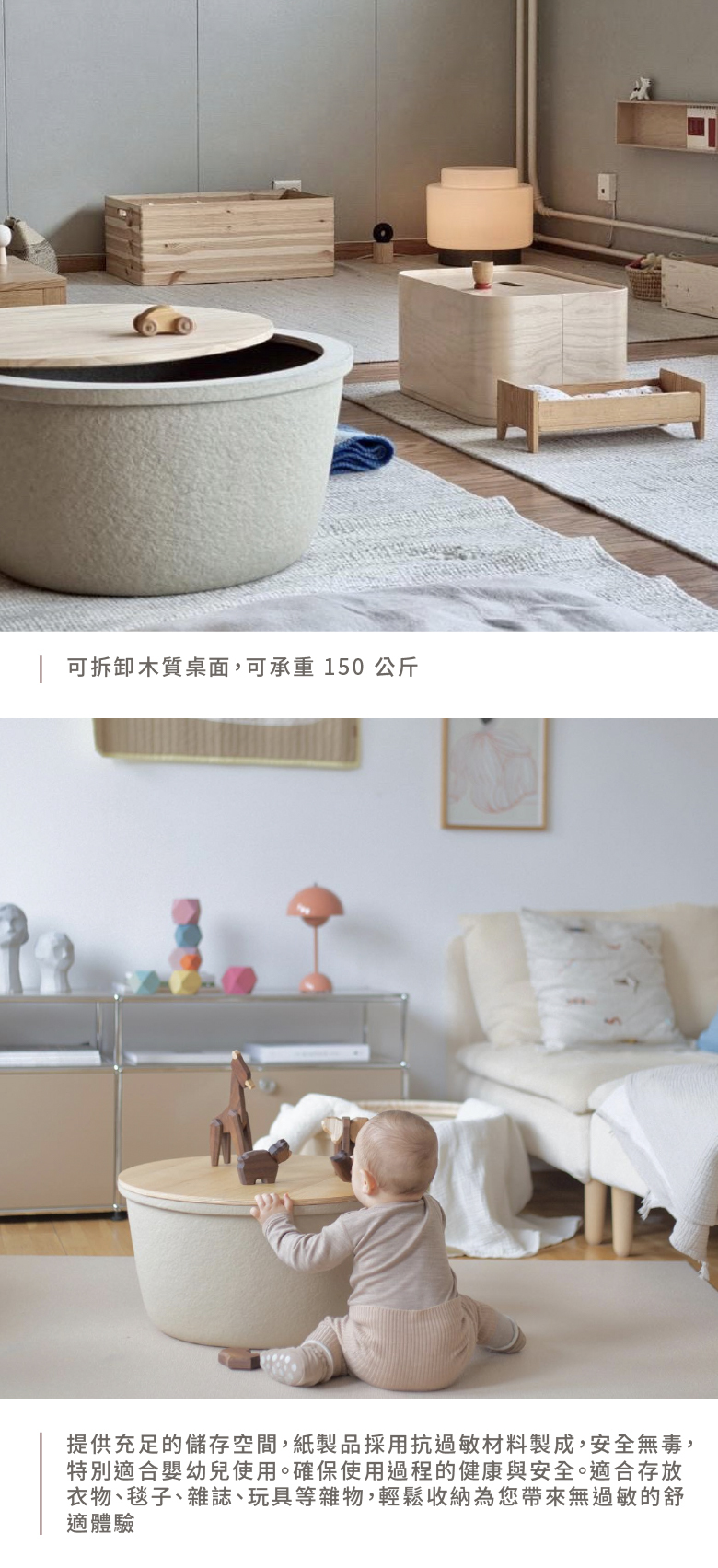 提供充足的儲存空間,源自FSC認證紐西蘭松木及巴賽隆納回收紙廠的紙材,採用抗過敏材料製成,安全無毒,特別適合嬰幼兒使用。