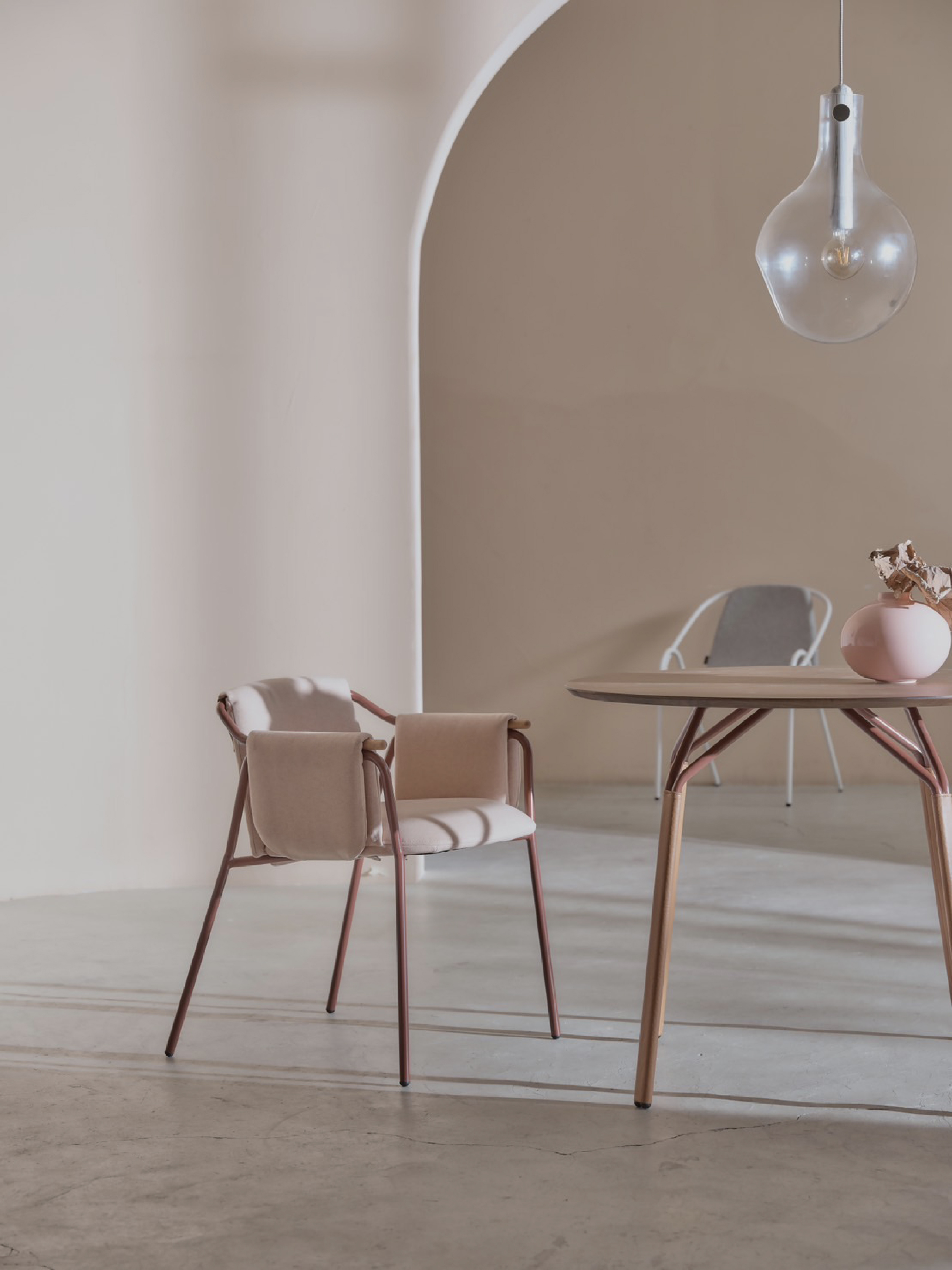 BLANKA設計餐桌與設計餐椅的搭配,極具個性的組和,即刻改變用餐氛圍。