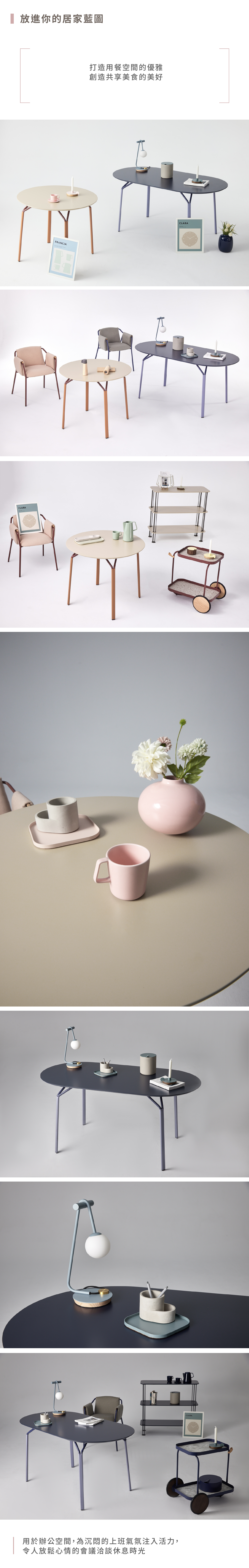 整張圓餐桌與長餐桌短邊採用正圓設計,以優雅為圓心,刻畫出安心居家感。桌邊貼心設計兩段式切邊,手感滑順不刮手。
