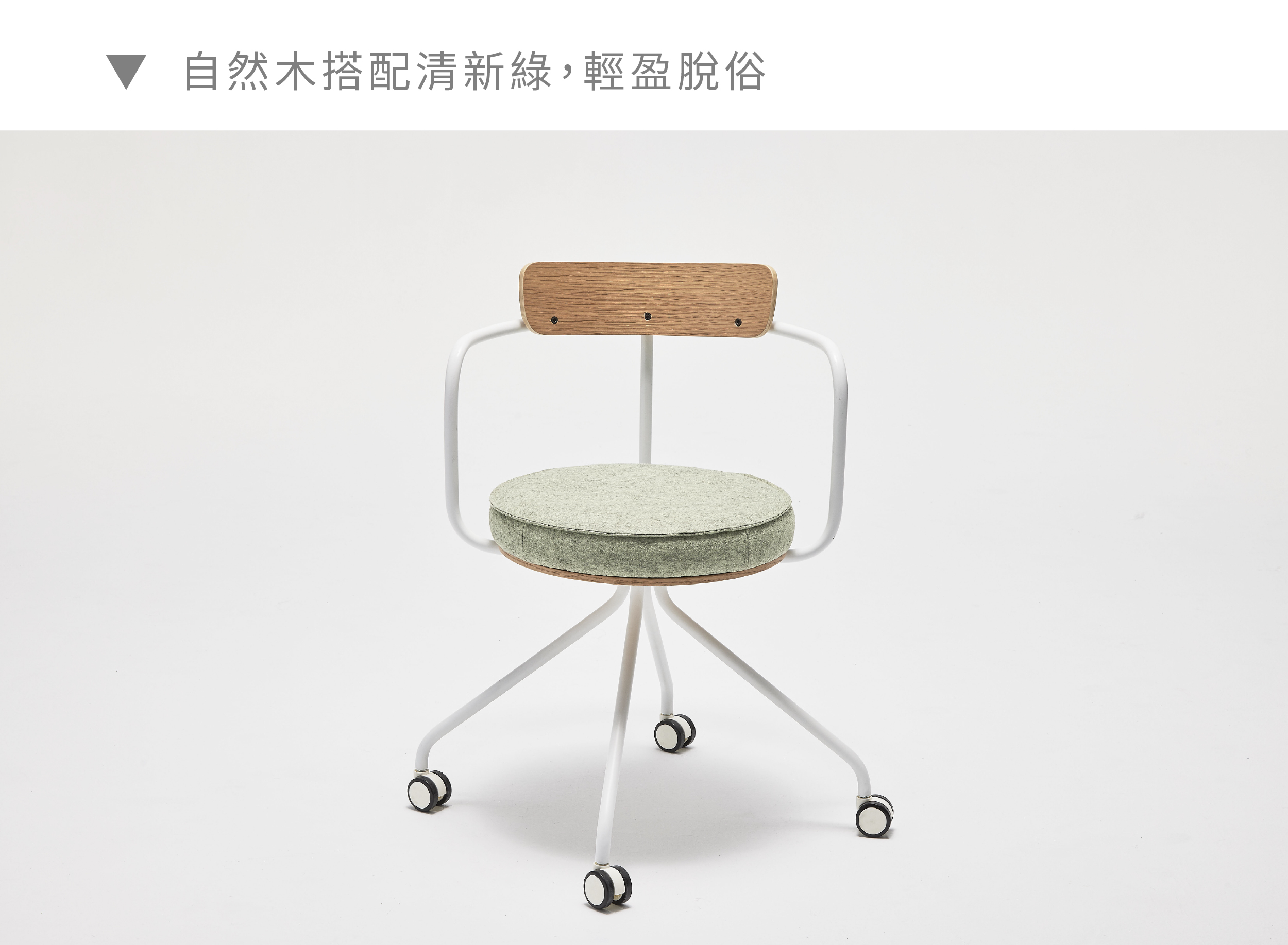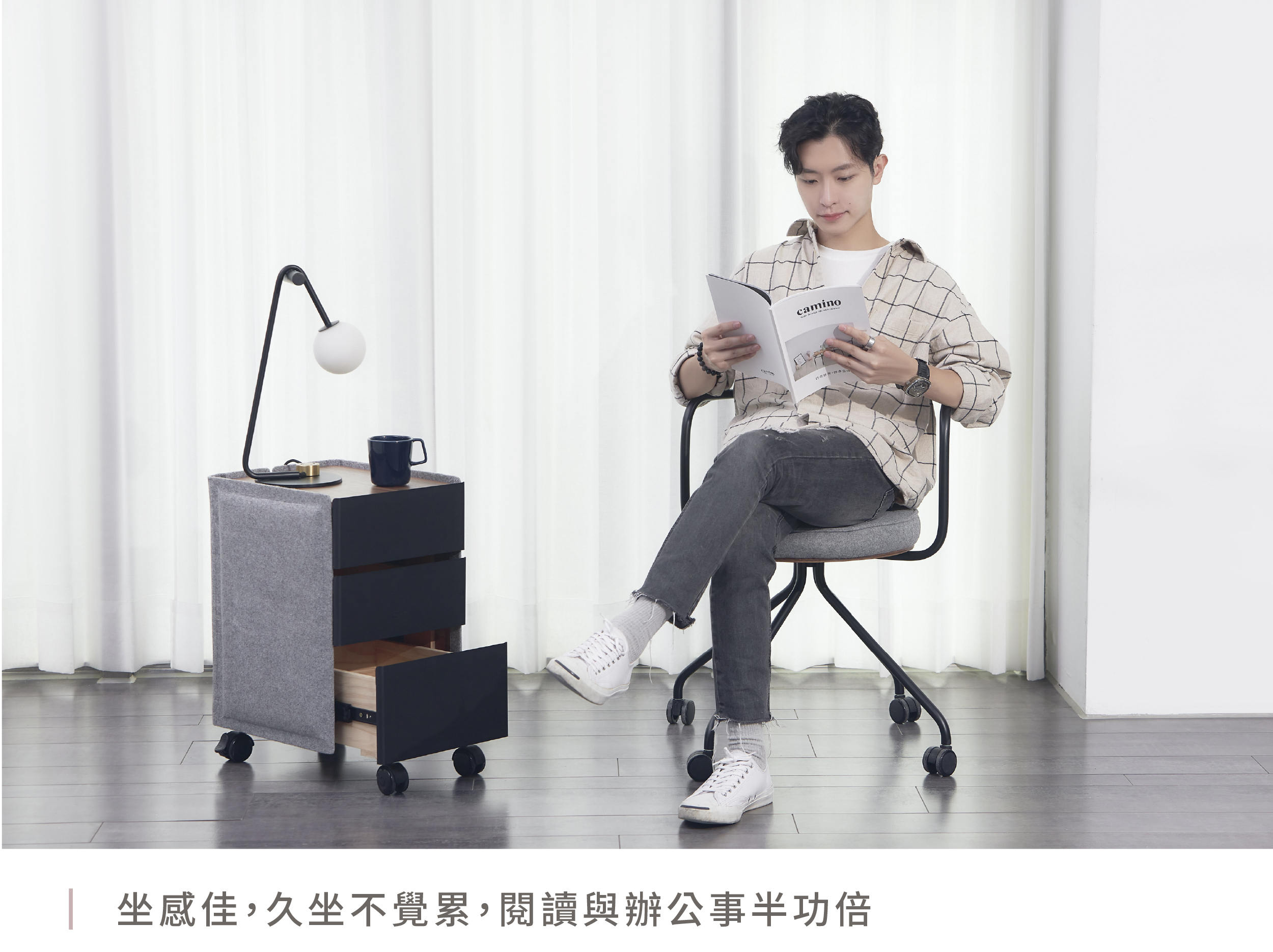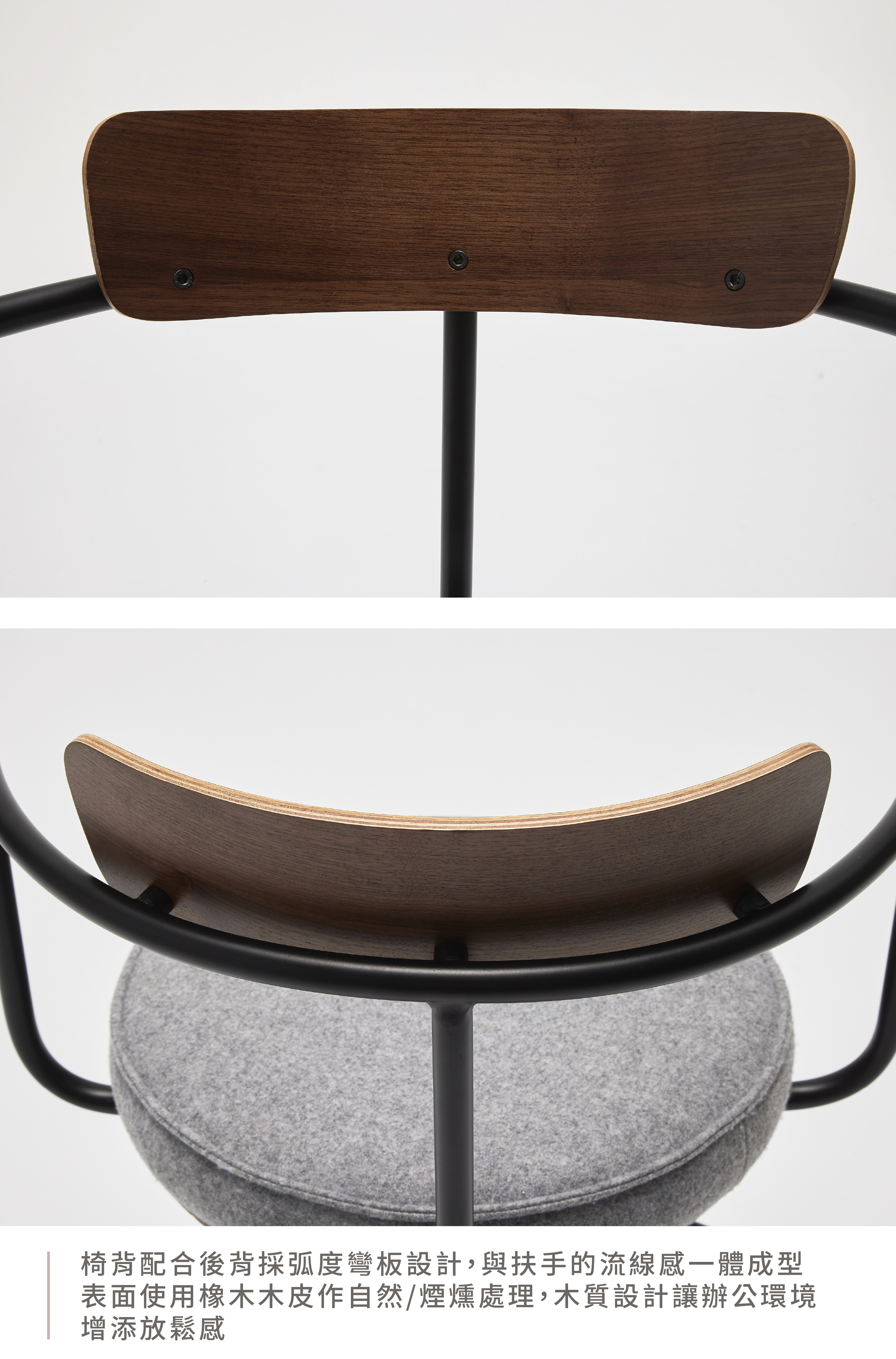 椅背配合後背採弧度彎板設計,與扶手的流線感一體成型