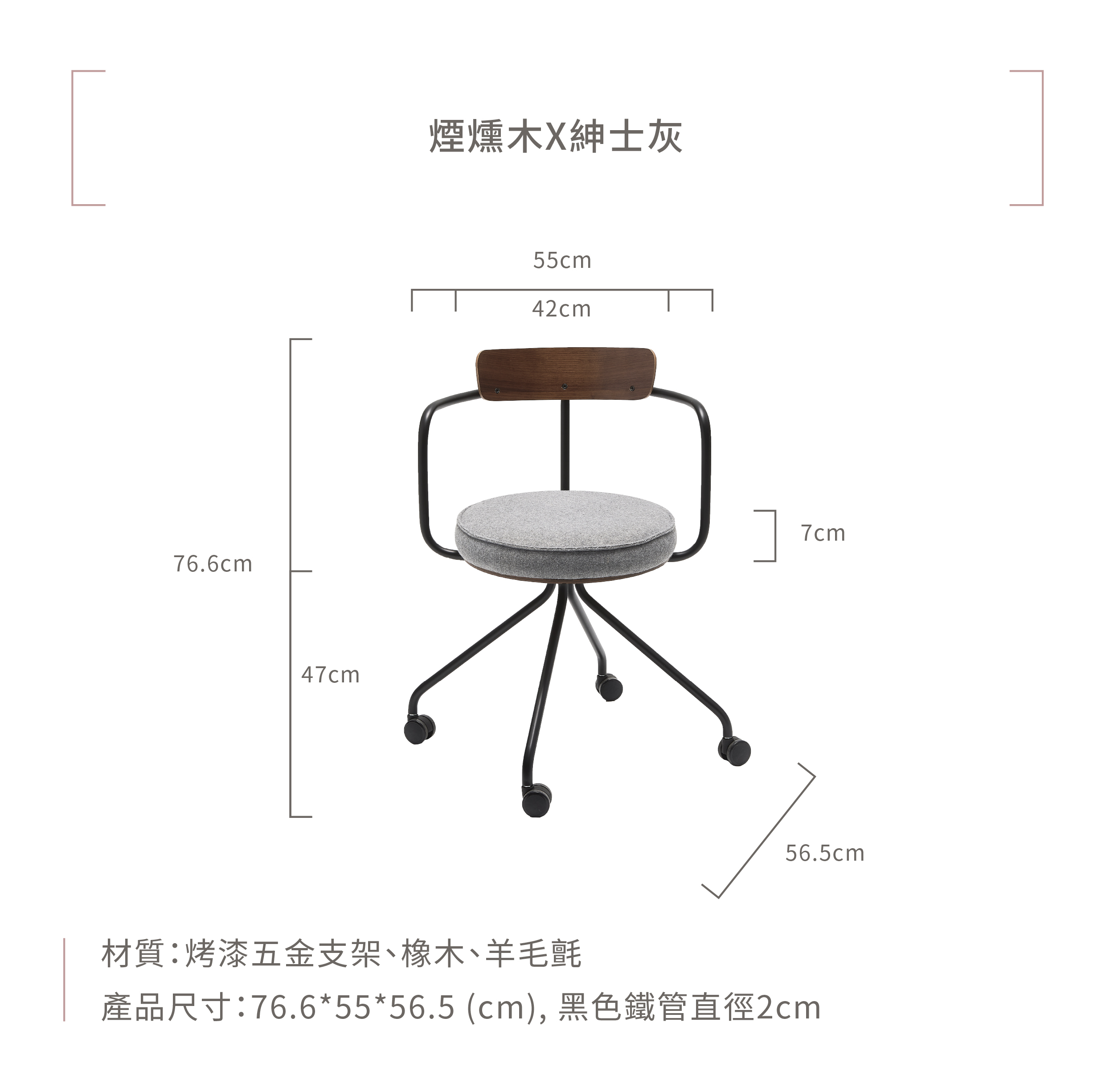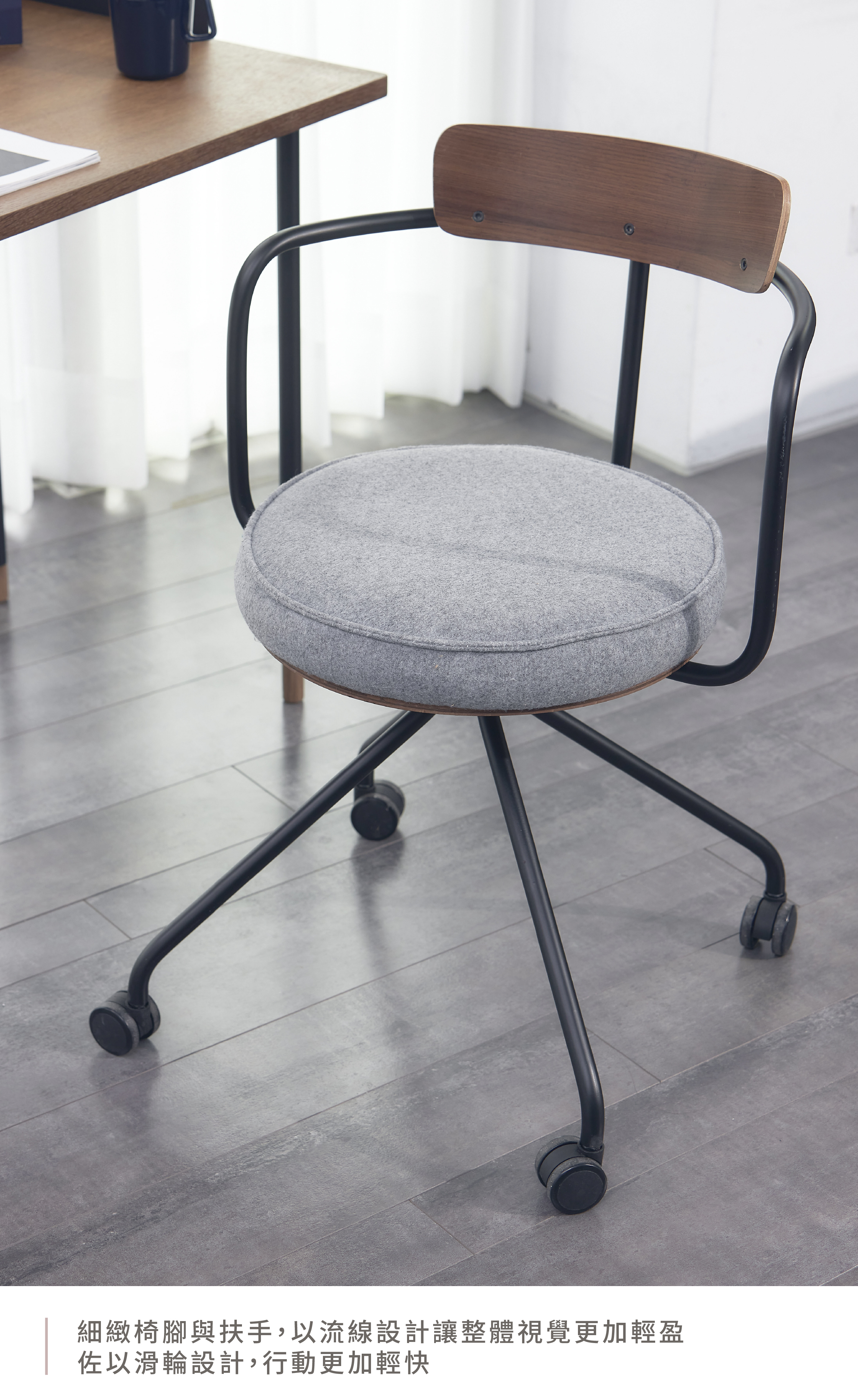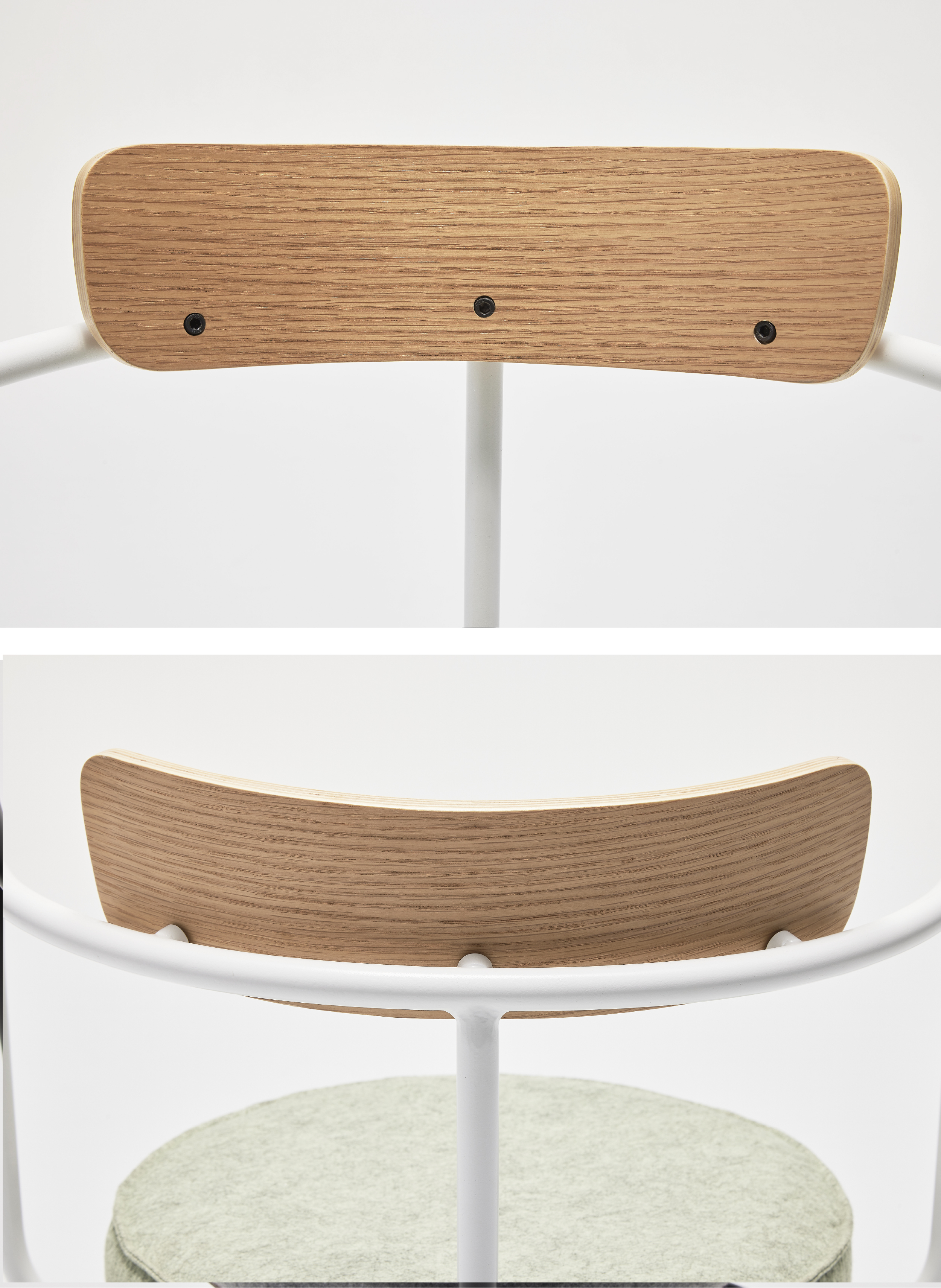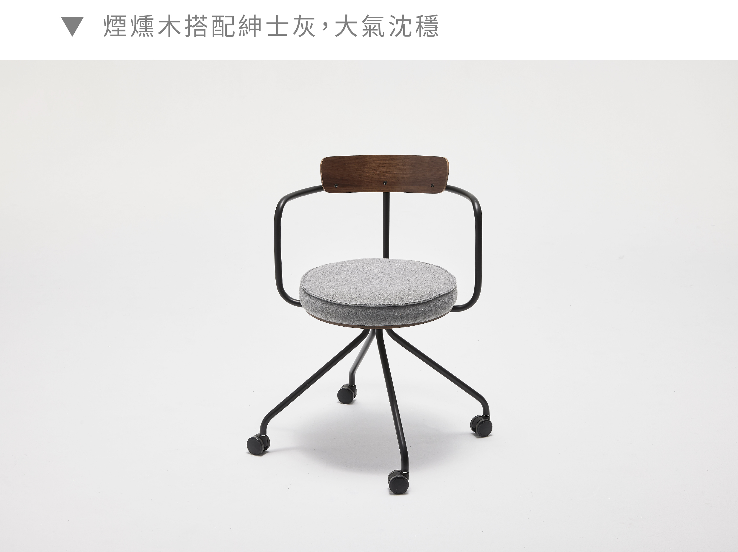 椅背配合後背採弧度彎板設計,與扶手的流線感一體成型