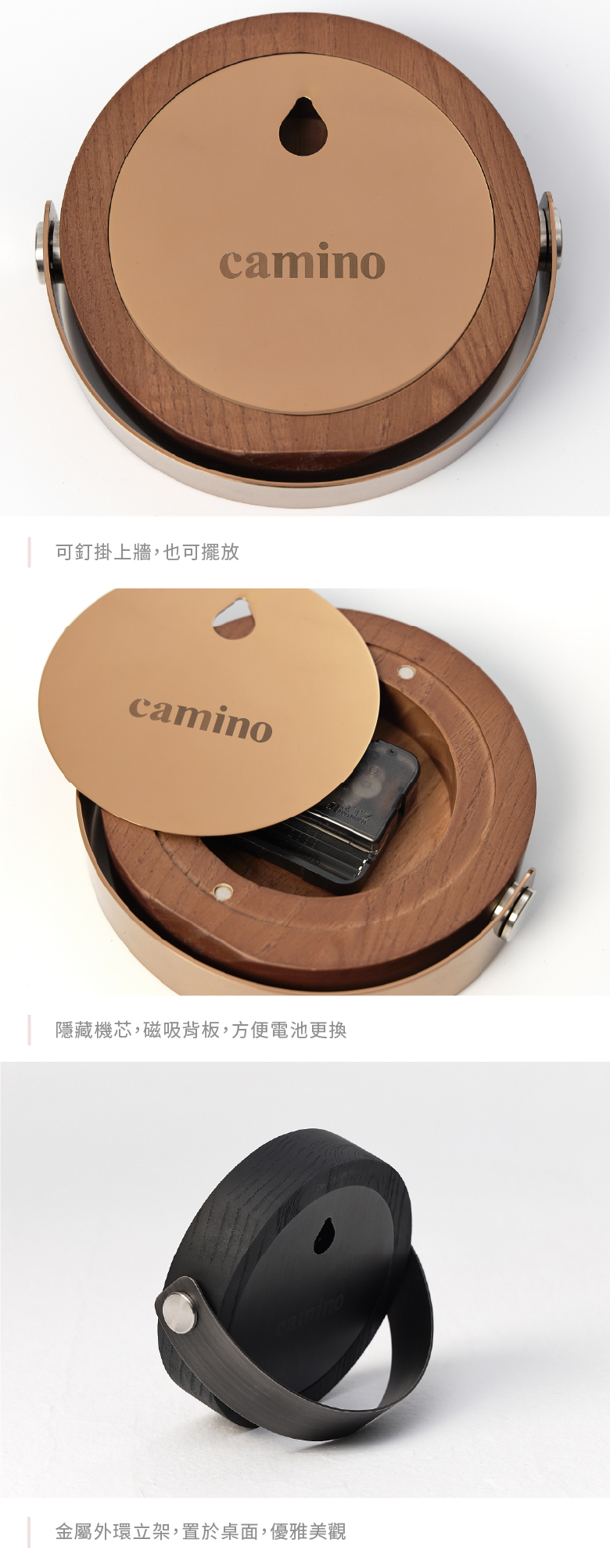 camino超越時間,定義空間的經典設計,獨特的天然紋理與標誌性的邊環,為生活空間增添一絲溫暖與質感,每一個刻度彷彿在述說著時光的故事,三種色系點綴不同空間氛圍,無論擺放在桌上或掛於牆上皆優雅。