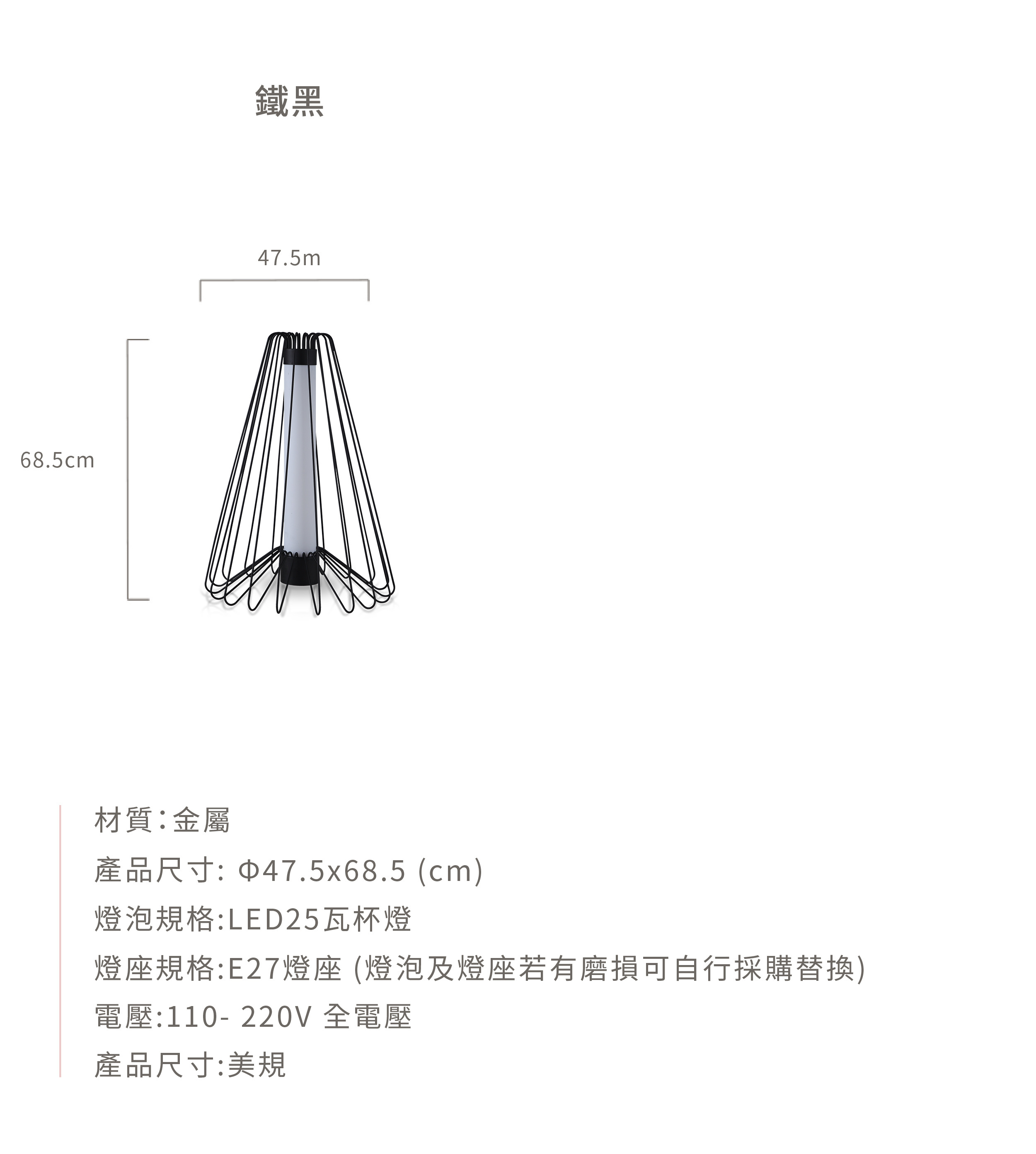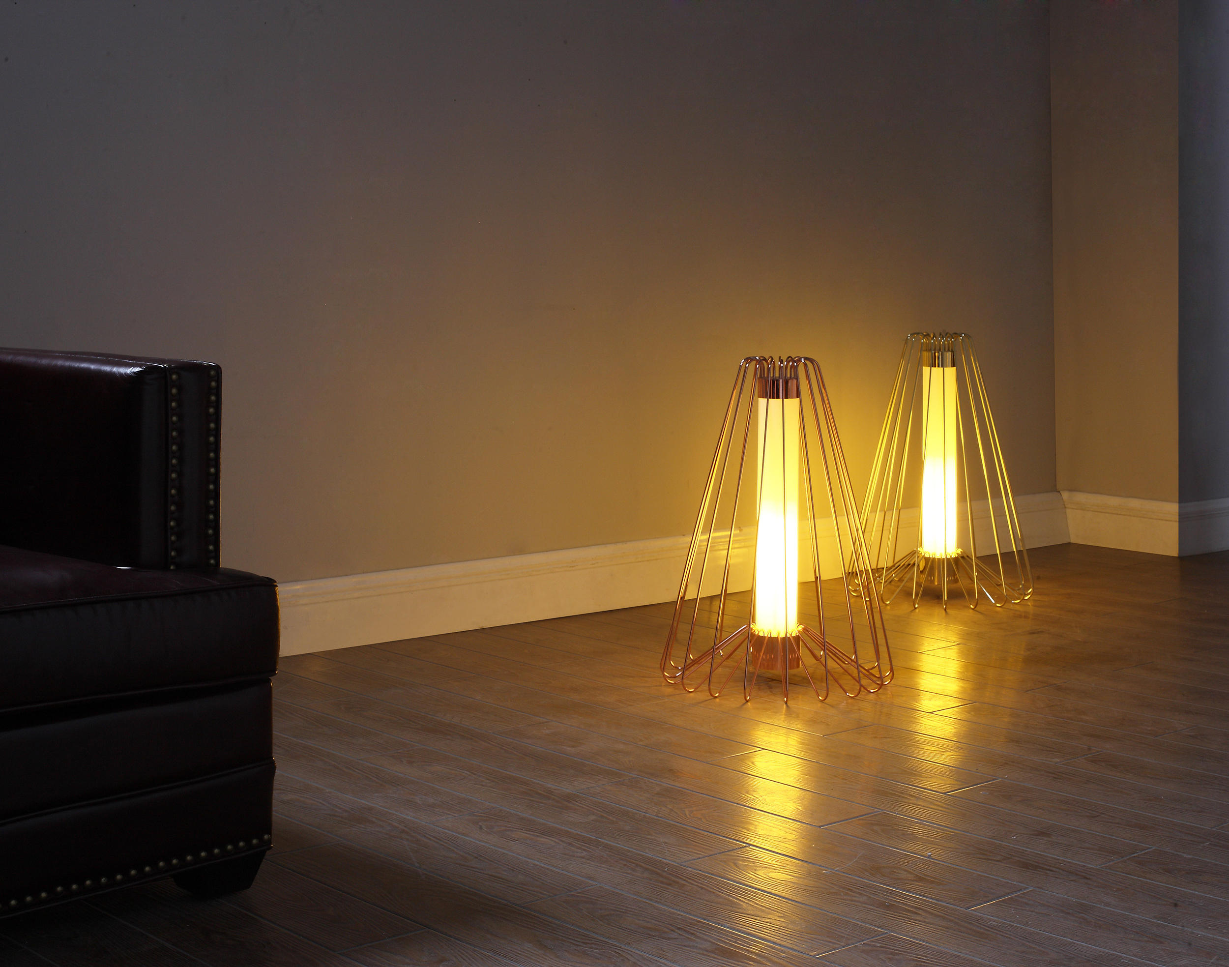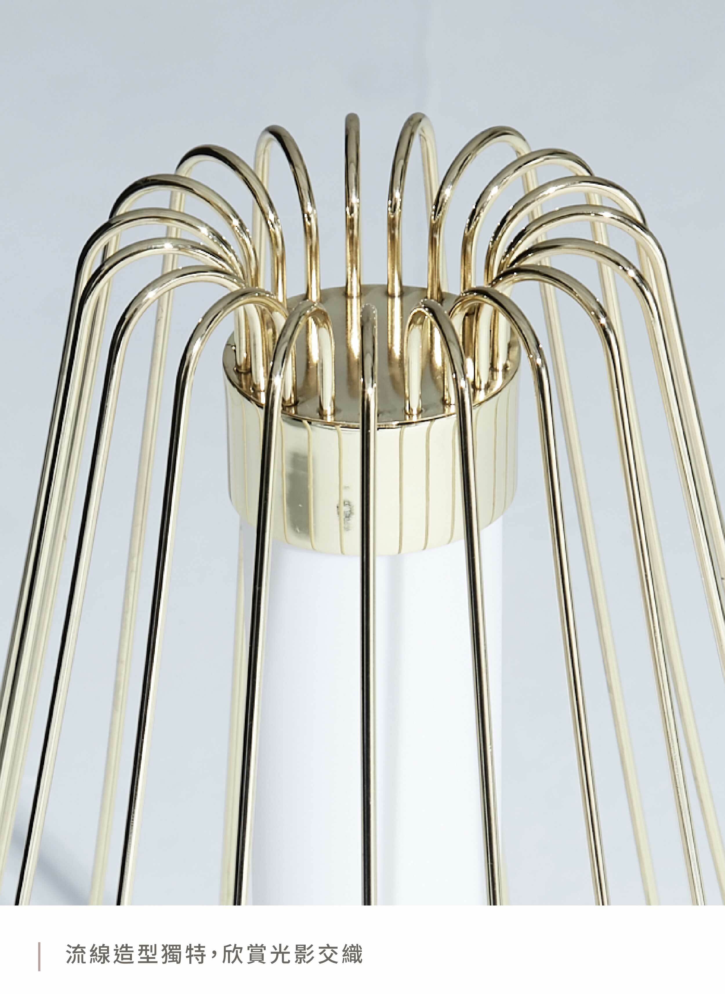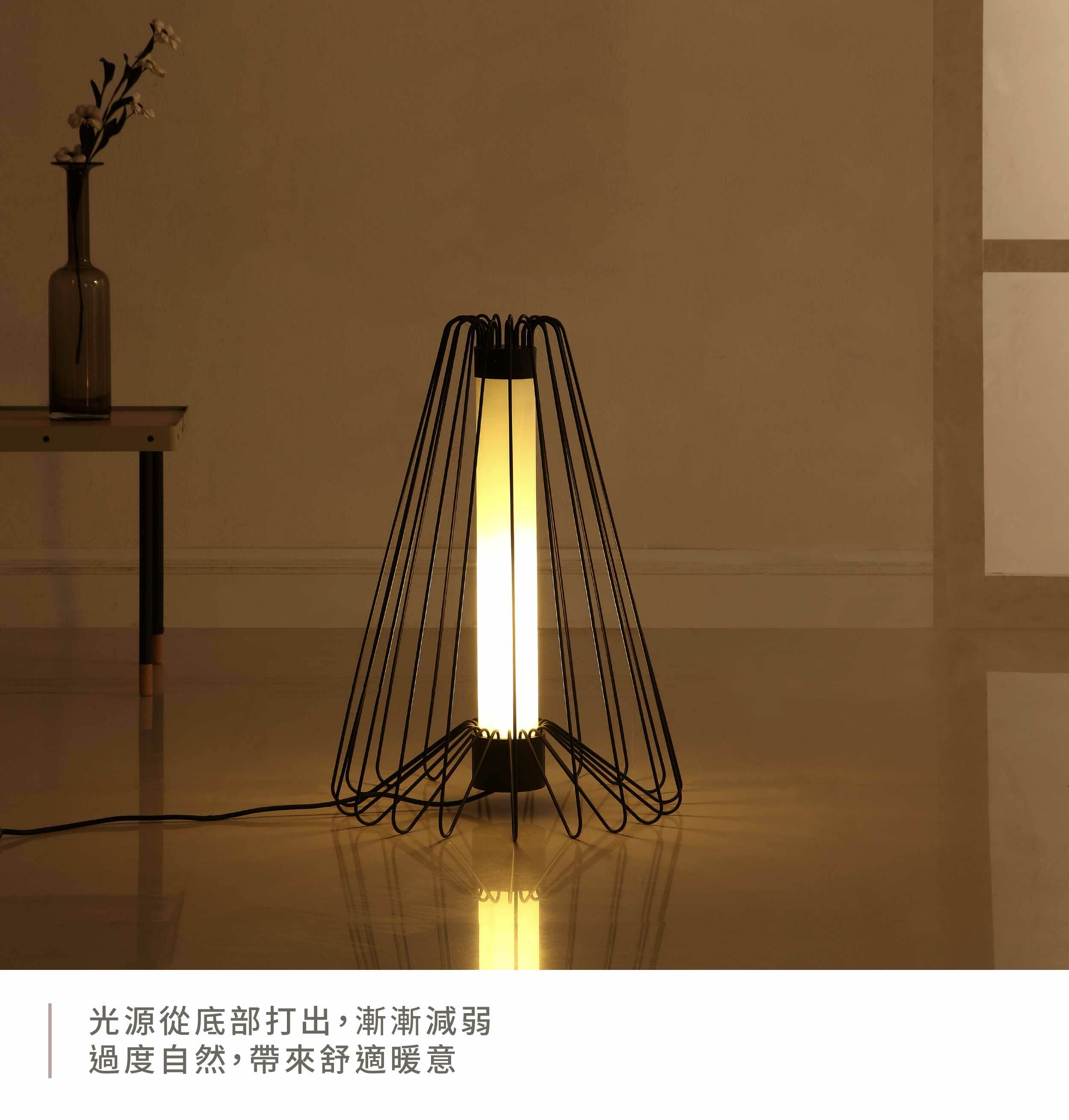 燈管底置LED燈泡,營造出向上光源漸弱的餘韻