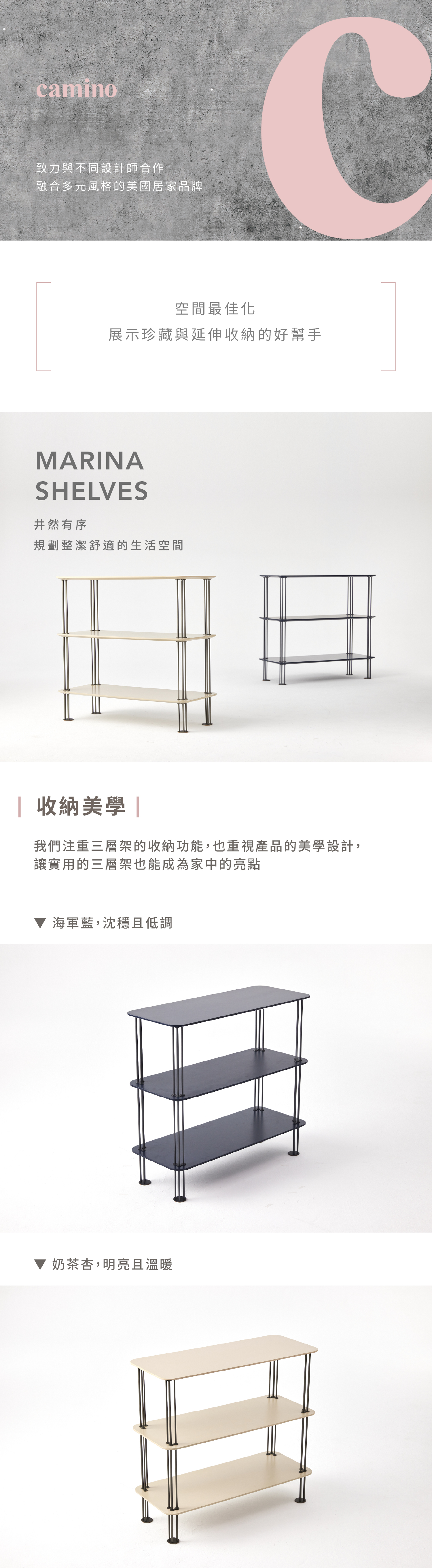 camino|MARINA 三層置物架 不論擺放書籍、藝術品,或日常小物,都能流出適當空間,讓收納也能擁有流暢的節奏。