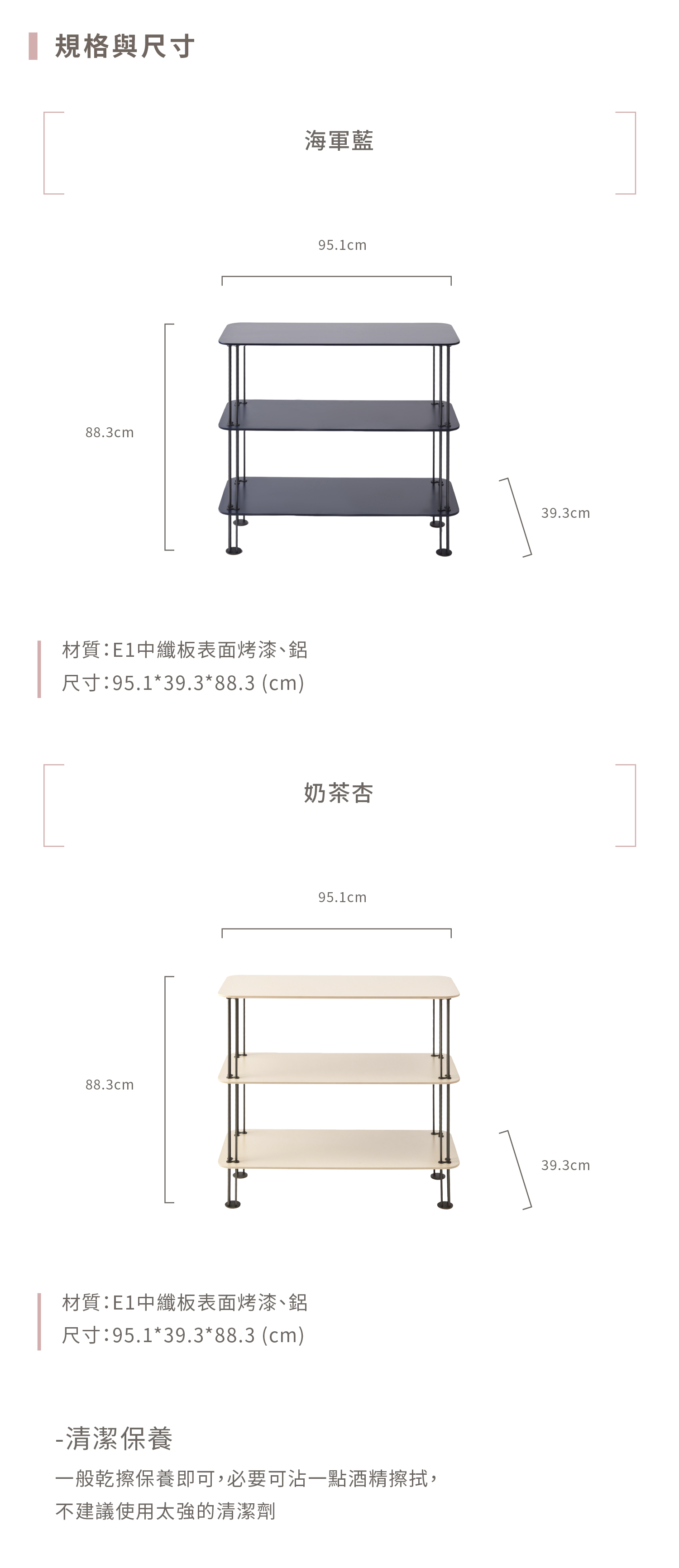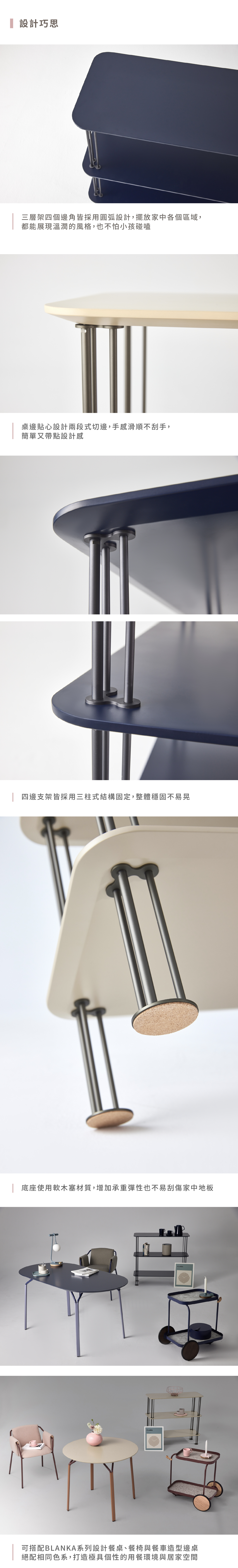 三層架四個邊角皆採用圓弧設計,擺放家中各區域,都能展現溫潤的風格。