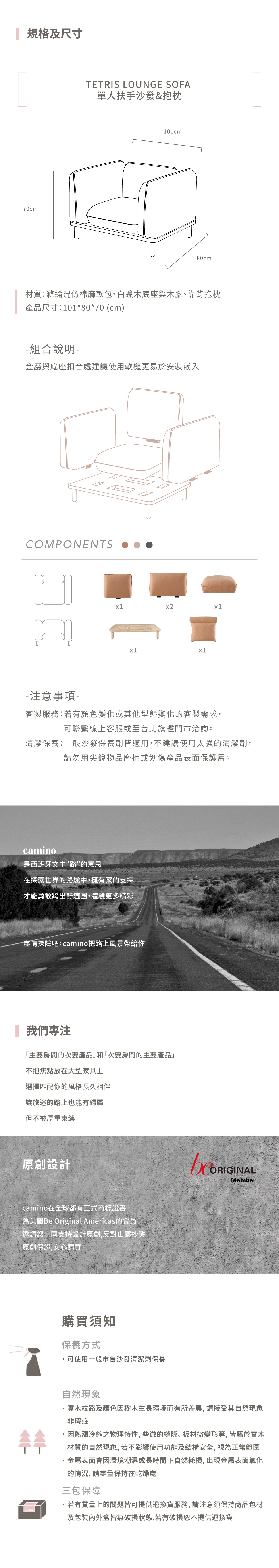 把 camino|TETRIS LOUNGE 單人扶手沙發 組成休憩最佳的一隅。