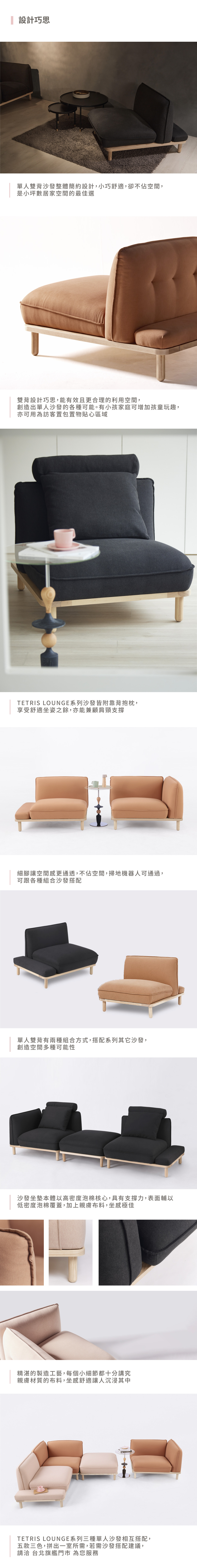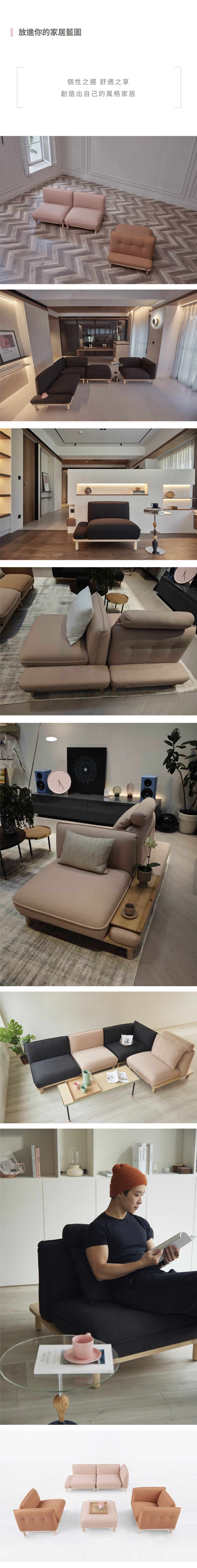 雙背設計巧思,能有效且更合理的利用空間,創造出單人沙發的各種可能。