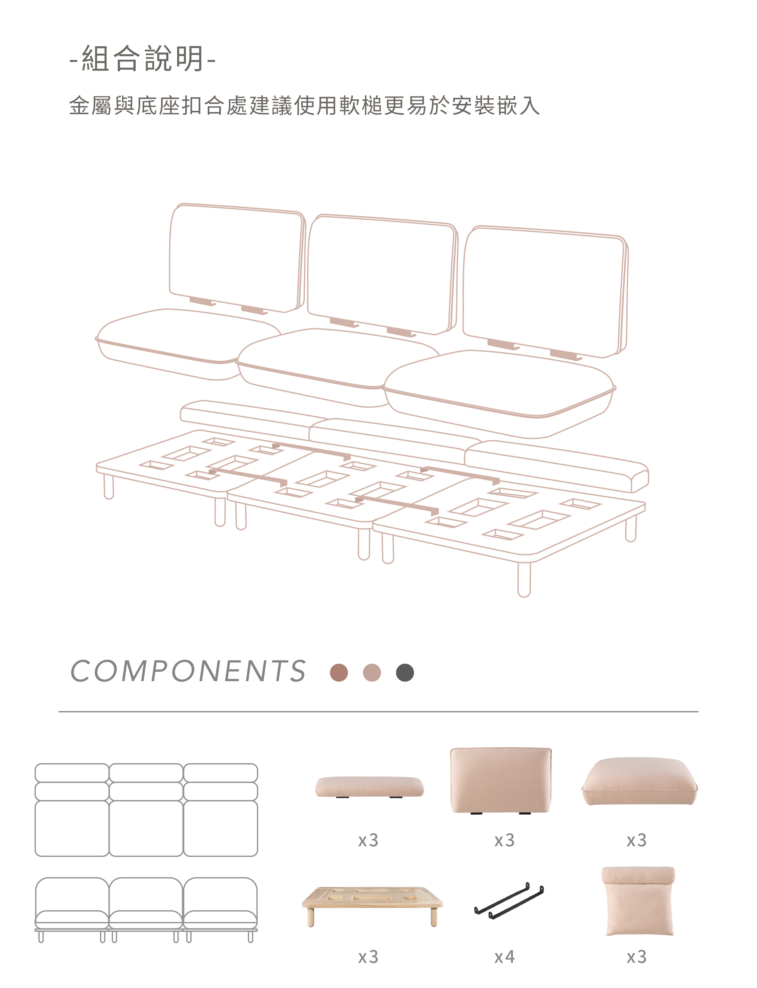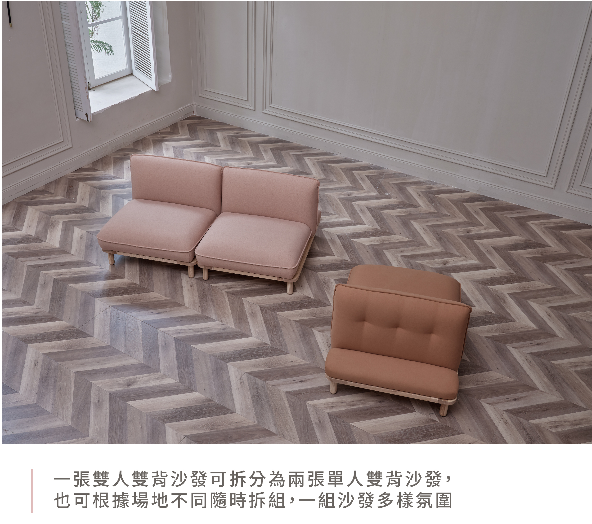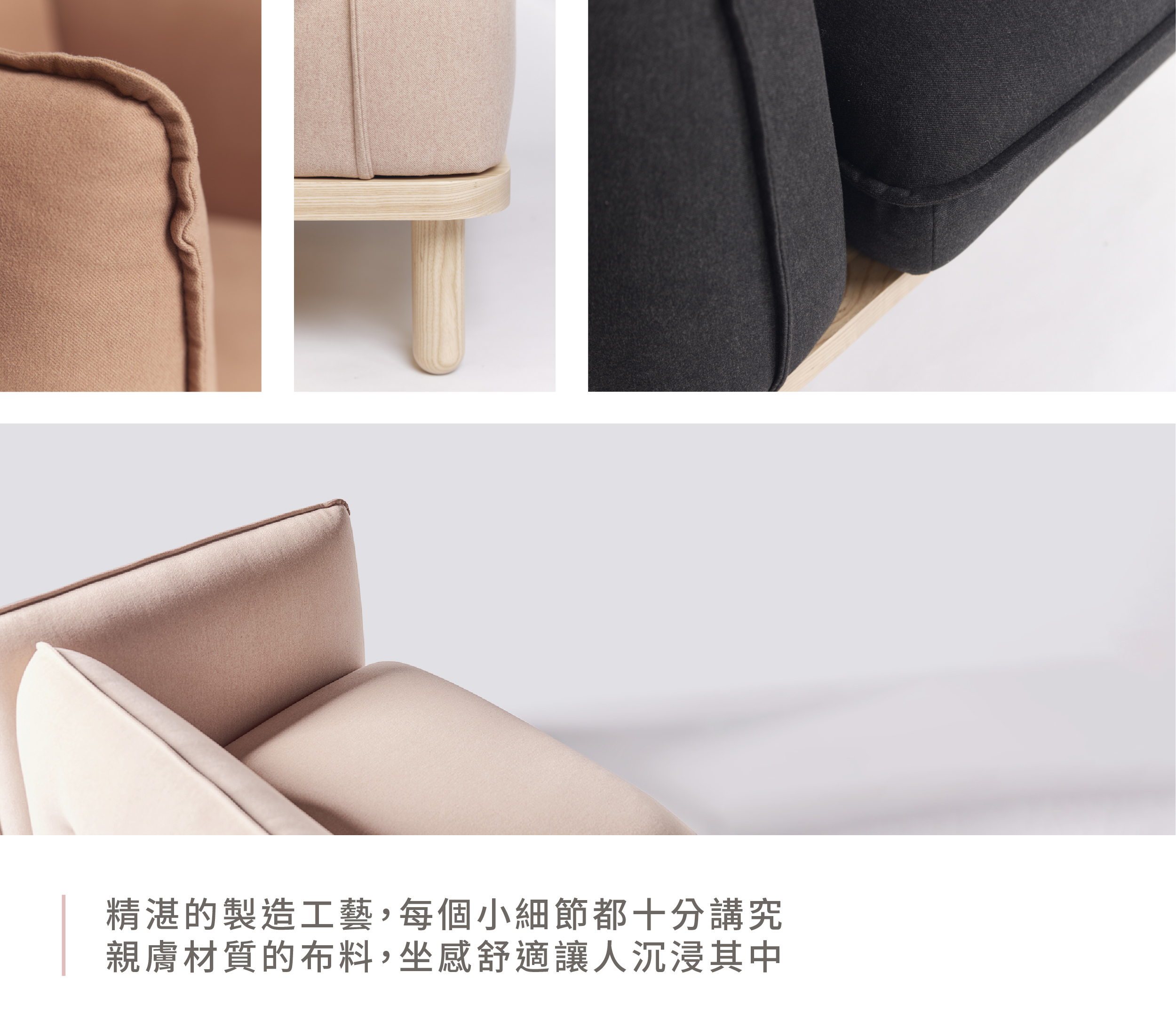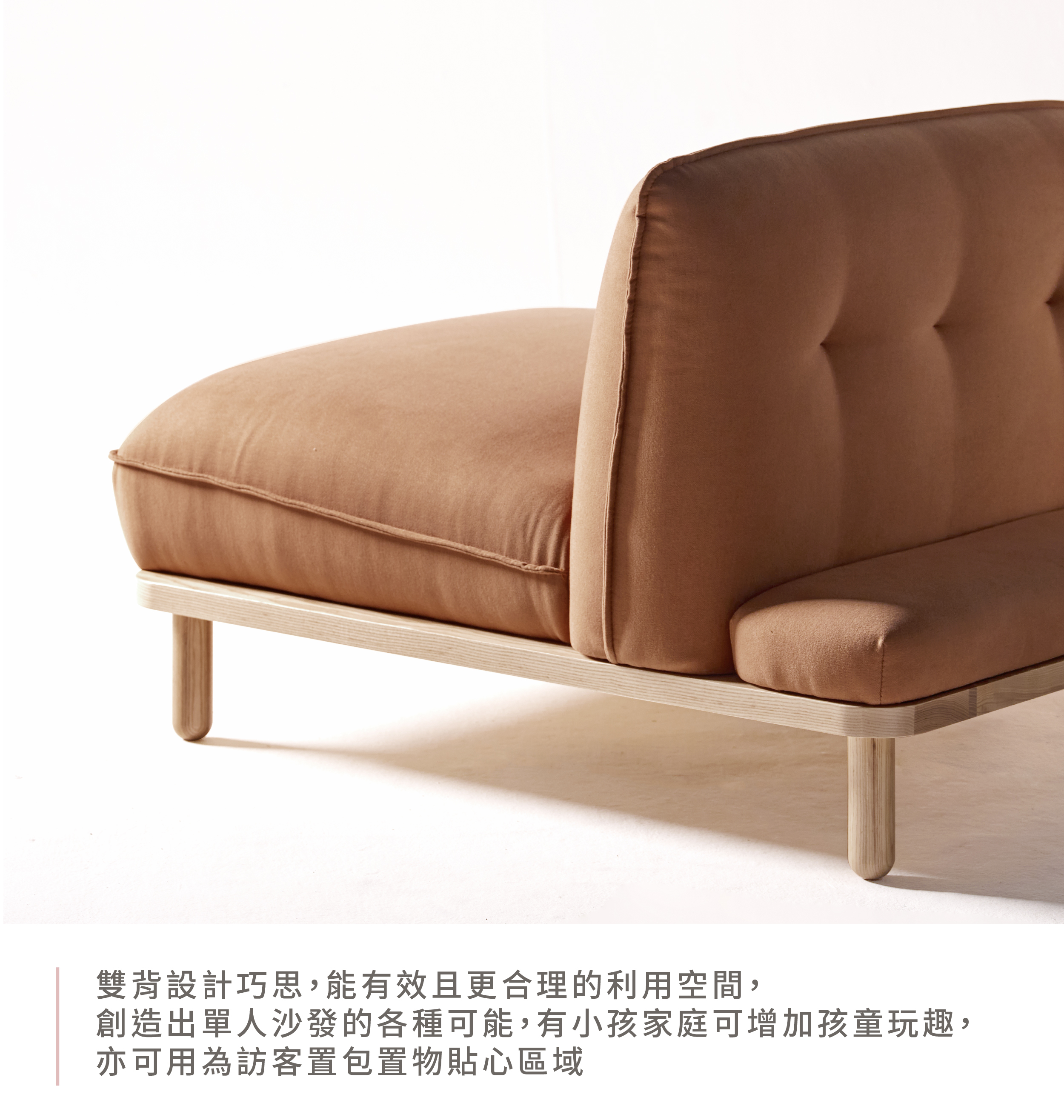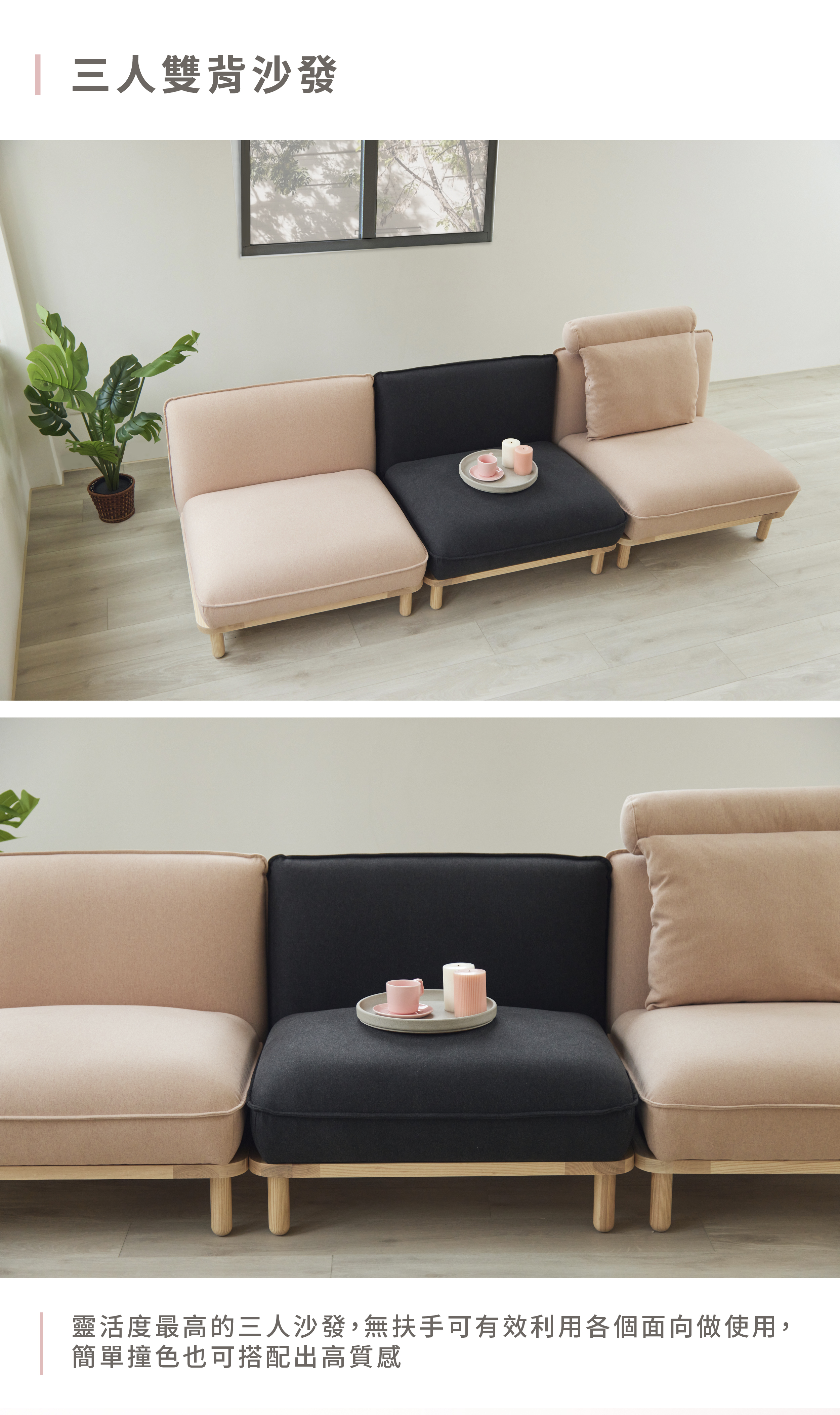 靈活度最高的三人沙發,無扶手可有效利用各個面向做使用,簡單撞色也可搭配出高質感。