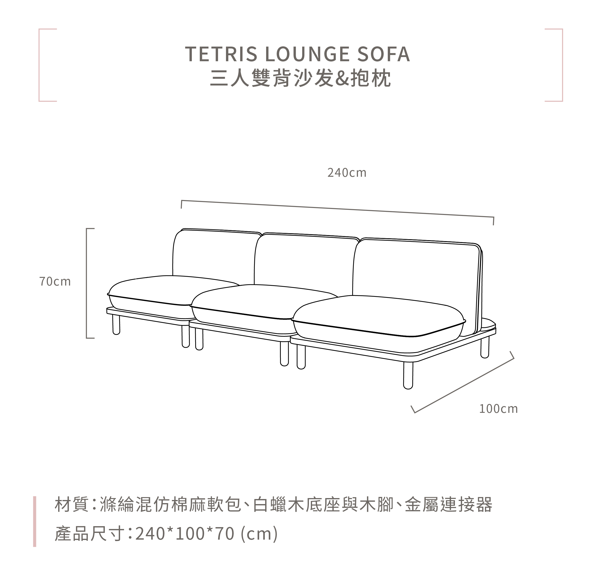 讓camino|TETRIS LOUNGE 三人雙背沙發 與你並肩而坐,無論世界如何變遷,永遠是我們共享的靜謐時光。