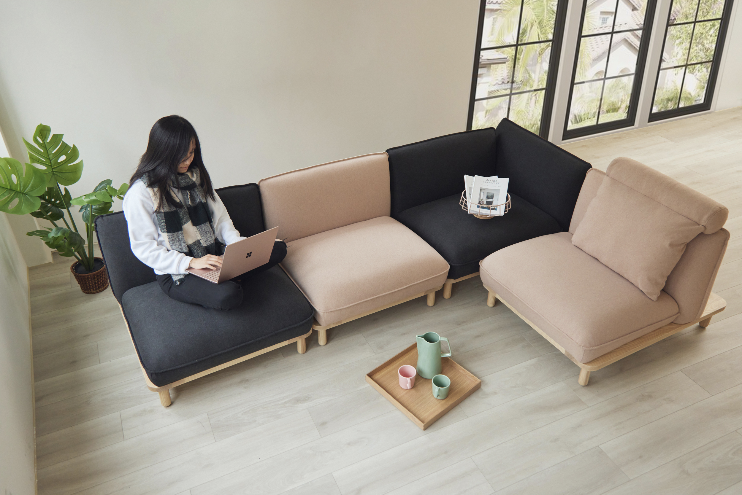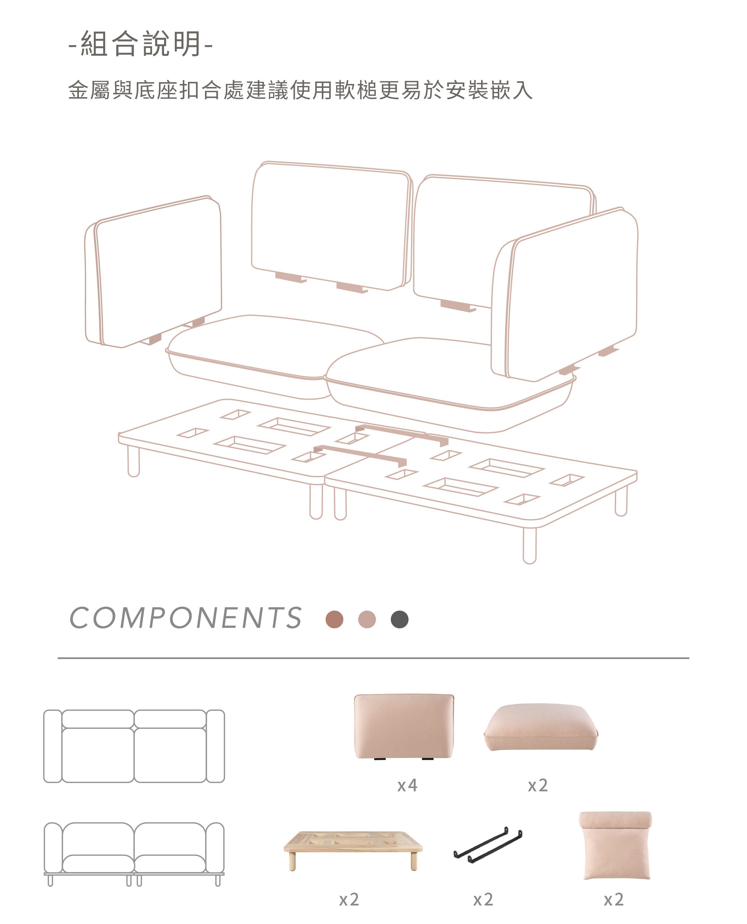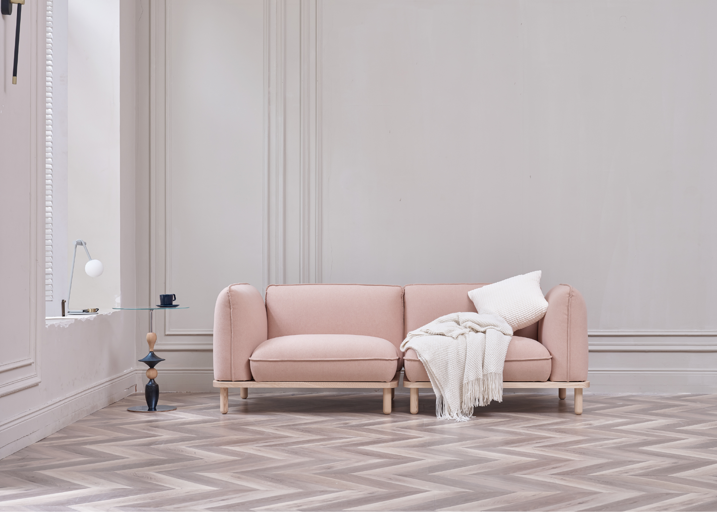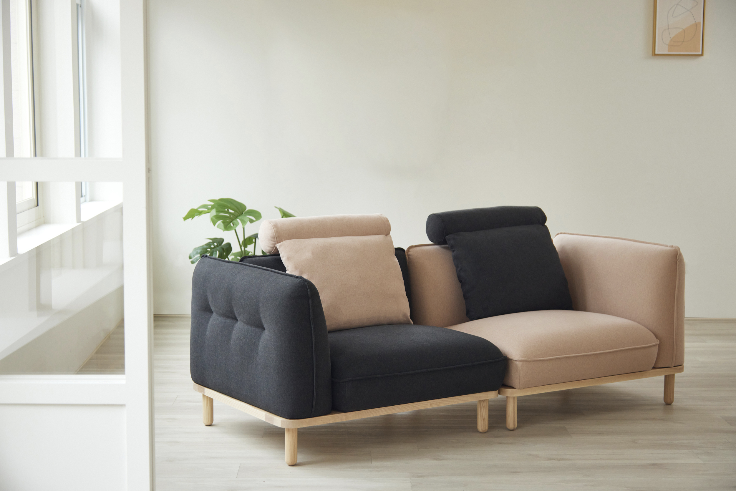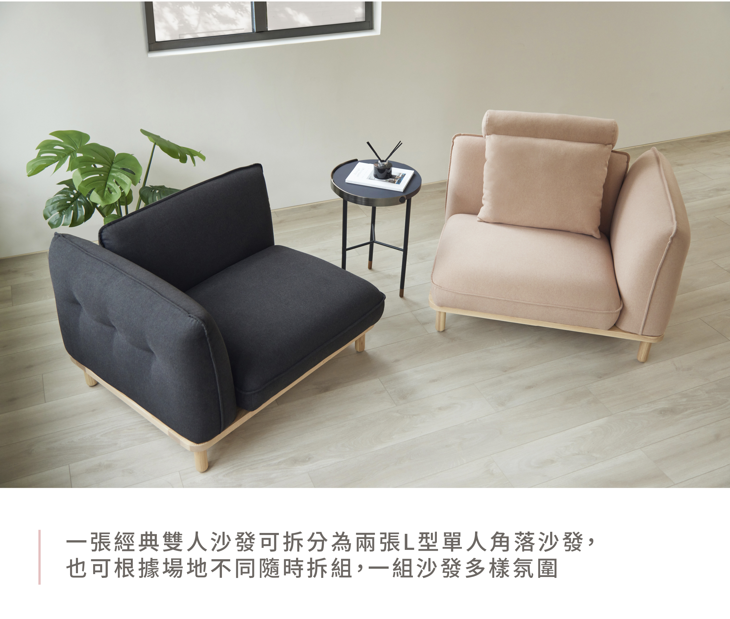 一張經典雙人沙發可拆分為兩張L型單人角落沙發,也可根據場地不同隨時拆組,一組沙發多樣氛圍。